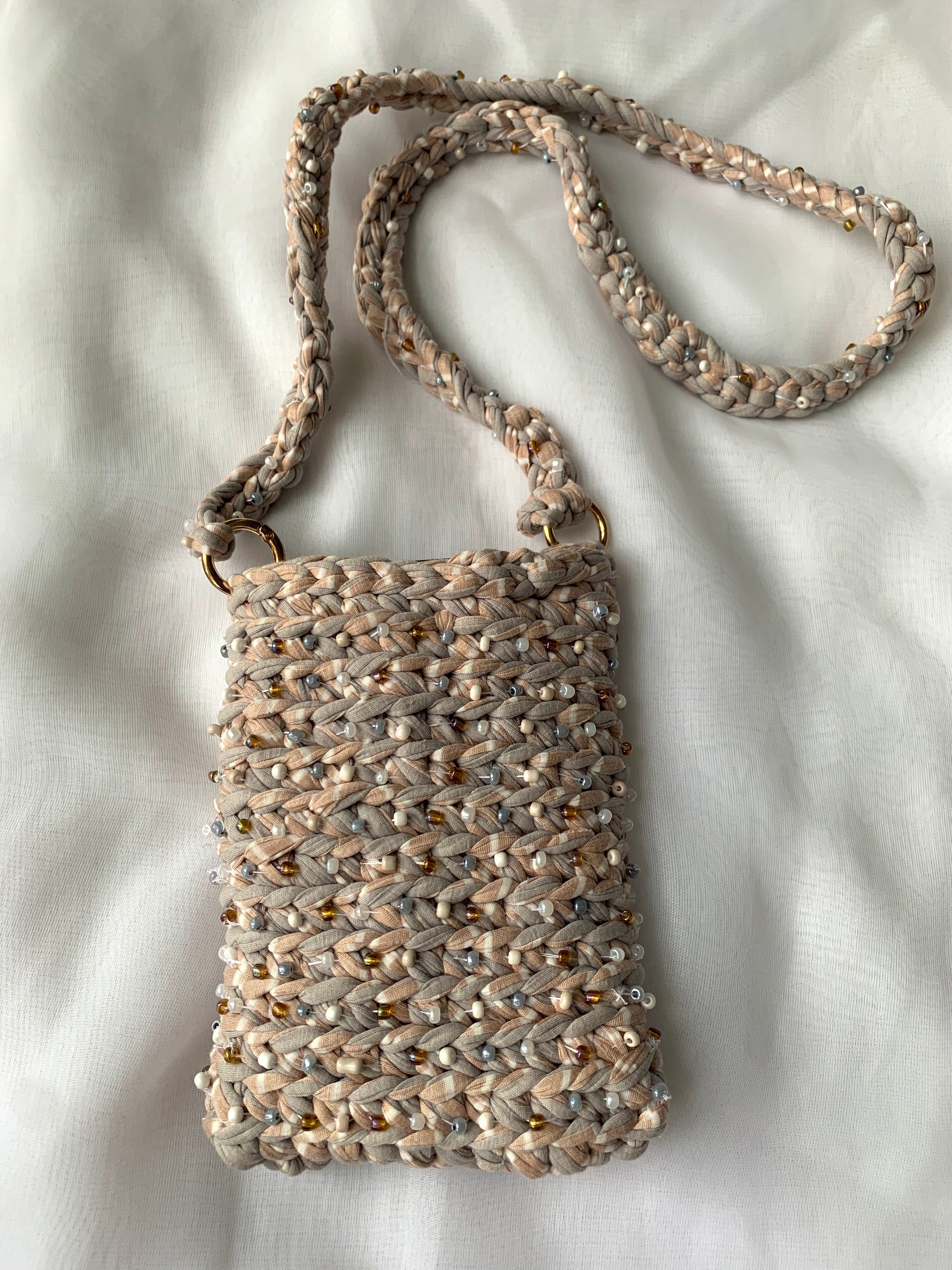 Táto krémová taška na telefón je doplnok, ktorý poteší vzhľadom aj praktickosťou. Koráliky dodávajú hravý a unikátny šmrnc, takže každý outfit hneď ožije. Malá, pohodlná a super praktická – zmestí mobil a drobnosti, ktoré potrebuješ mať po ruke. Perfektná kombinácia cute štýlu a funkčnosti, ktorá sa hodí ku každému looku! ✨